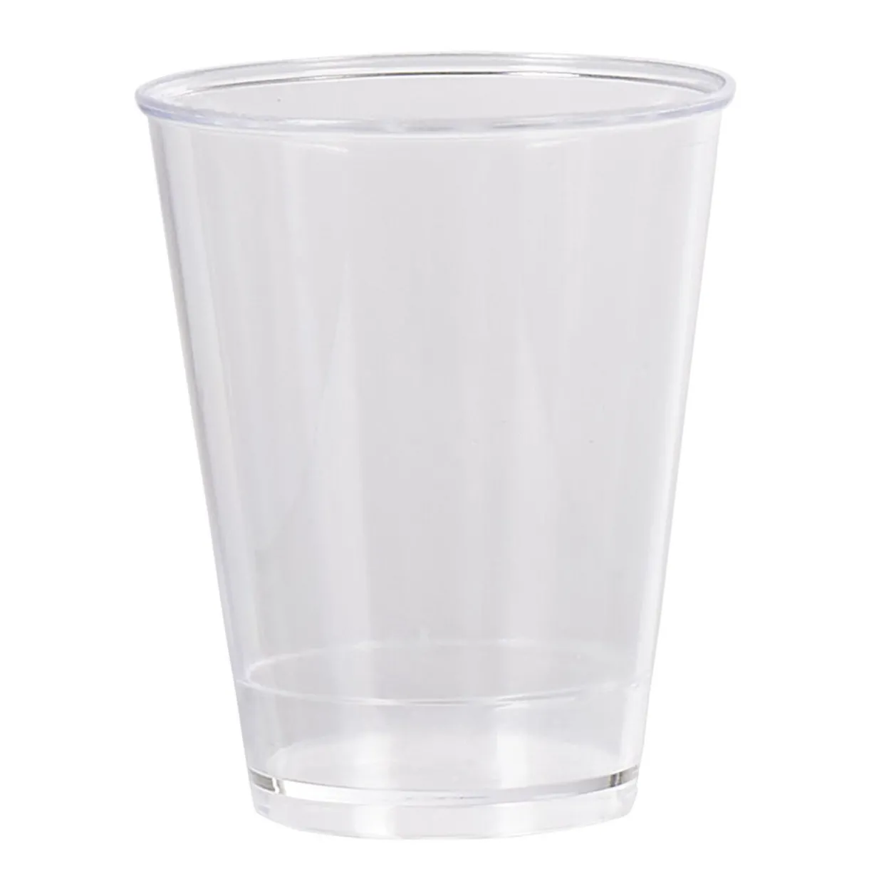 Lot de 10 verrines en forme de petits verres en plastique transparent lavables, réutilisables et recyclables.